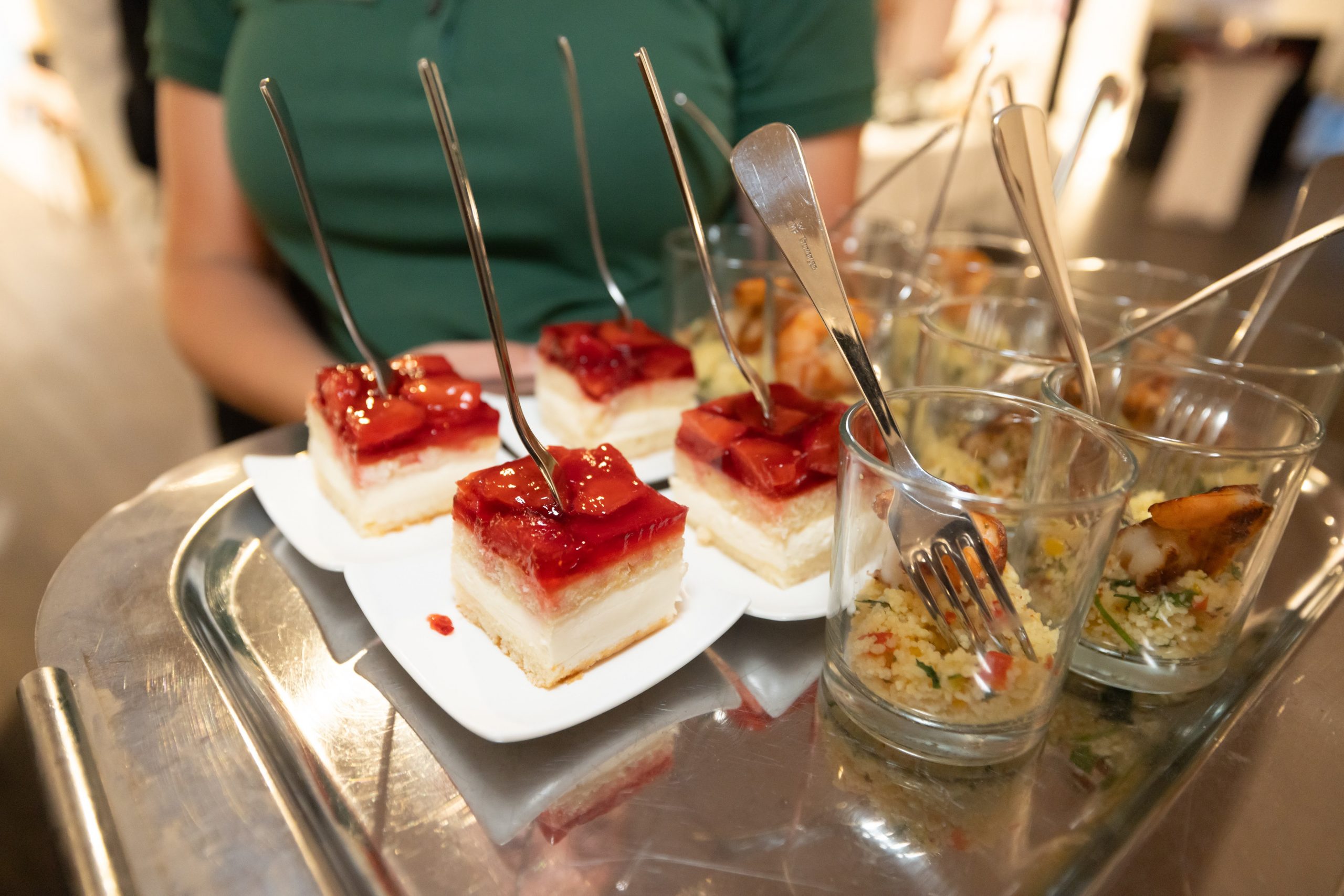 Ein weiterer Höhepunkt des Abends ist das „Flying Buffet der Gegensätze“, kreiert von Markus Zimmer. Die kulinarische Begleitung zur Ausstellung interpretiert das Thema der Gegensätze geschmacklich – süß trifft auf salzig, warm auf kalt, traditionell auf experimentell.
