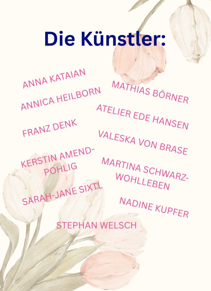 Am 03. Mai 2025 von 10 – 15 Uhr sind alle ausstellenden Künstler:innen persönlich vor Ort. Nutzen Sie diese Gelegenheit, um mehr über die Künstler:innen zu erfahren, persönliche Termine für Atelierbesuche zu vereinbaren – oder vielleicht entdecken und verlieben Sie sich direkt vor Ort in Ihr neues Lieblingskunstwerk!