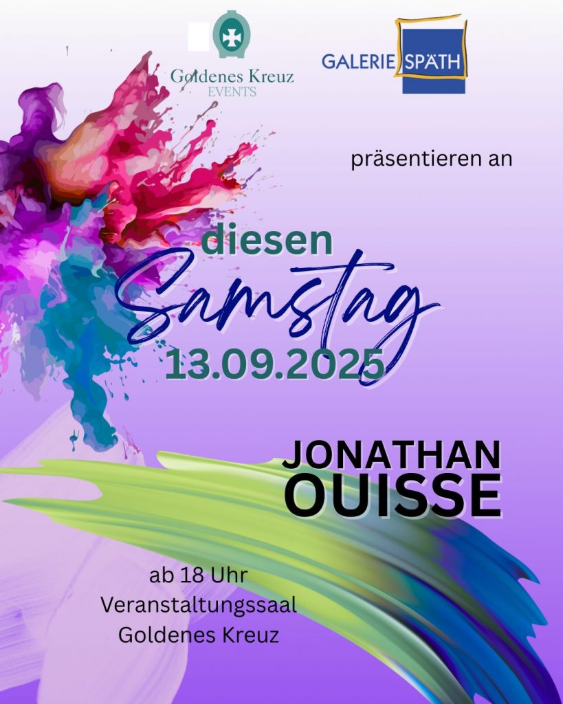 Am 13. September 2025 präsentiert der französische Künstler Jonathan Ouisse eine Auswahl seiner eindrucksvollsten Werke im Veranstaltungssaal des Goldenen Kreuzes – kuratiert von der Galerie Späth.